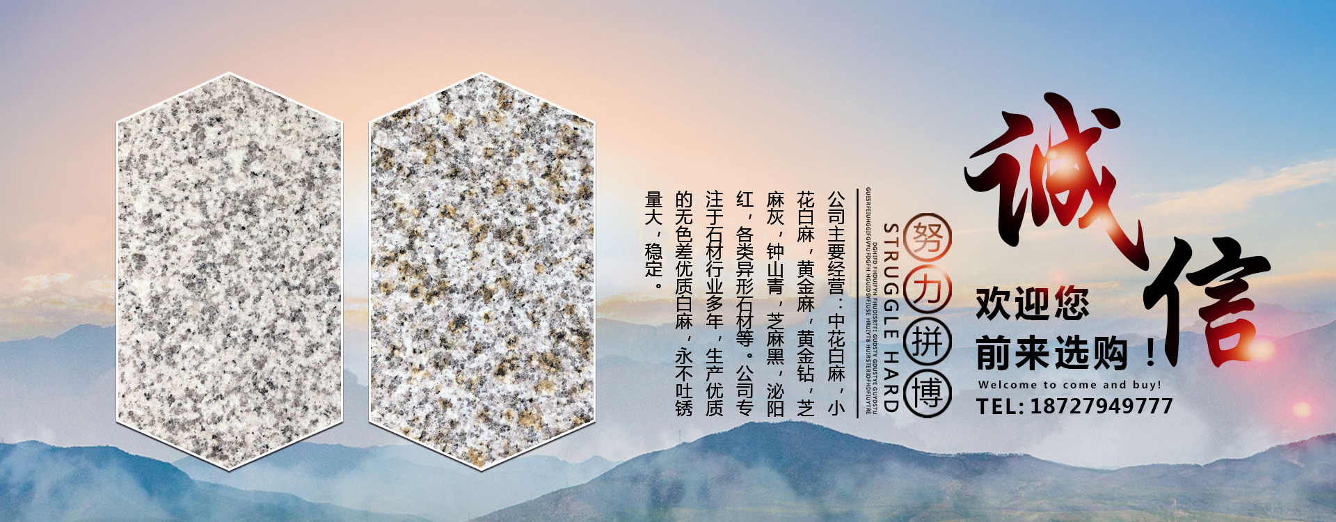 隨州市鑫順石材有限公司位于湖北省隨州市隨縣萬和鎮(zhèn)桐柏山。是一家集礦山開采、石材加工、異形制作、產(chǎn)品銷售為一體的大型綜合型石材企業(yè)!本公司主要經(jīng)營:中花白麻,小花白麻,黃金麻,黃金鉆,芝麻灰,鐘山青,芝麻黑,泌陽紅,各類異形石材。生產(chǎn)的石材規(guī)格齊全、做工精細,被廣泛用于外墻干掛、廣場地鋪、市政園林、建筑工程、環(huán)境景觀異形石材等各類建筑墻體、地面的裝飾裝修。公司專注于石材行業(yè)多年,生產(chǎn)優(yōu)質(zhì)的無色差優(yōu)質(zhì)白麻,永不吐銹量大,穩(wěn)定,主攻高鐵站,地鐵站,機場等大型市政房產(chǎn)。可承接各種異形加工,速度快,質(zhì)量無憂。我們秉承“誠信經(jīng)營,服務(wù)為本”的經(jīng)營理念,竭誠為廣大客戶提供優(yōu)質(zhì)的產(chǎn)品和滿意服務(wù),期待與您的合作,竭誠歡迎國內(nèi)外新老客戶前來訂購洽談!